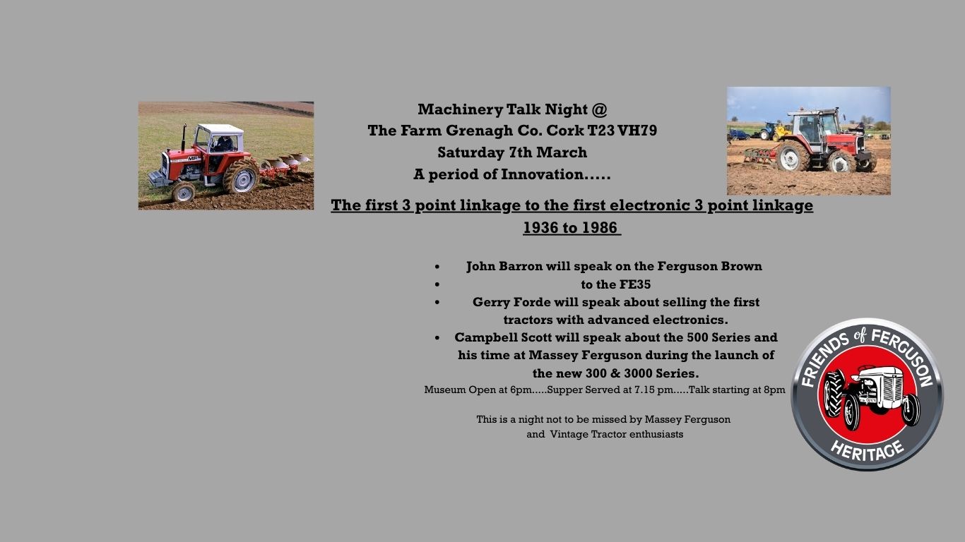 The evening will cover the period of innovation from first 3 point linkage in 1936 to the first electronic 3 point linkage in 1986